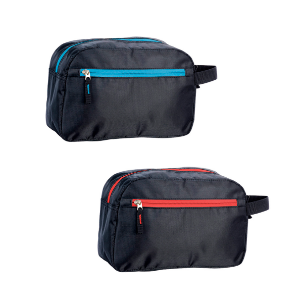 Bolsa multiusos con agarradera fabricada en poliéster con cierre de color y bolsas en interior tipo red, compartimento al frente con cierre de color, se puede utilizar para cosméticos o cualquier producto de aseo personal. Gracias a su tamaño es ideal para llevarla contigo a cualquier lugar.