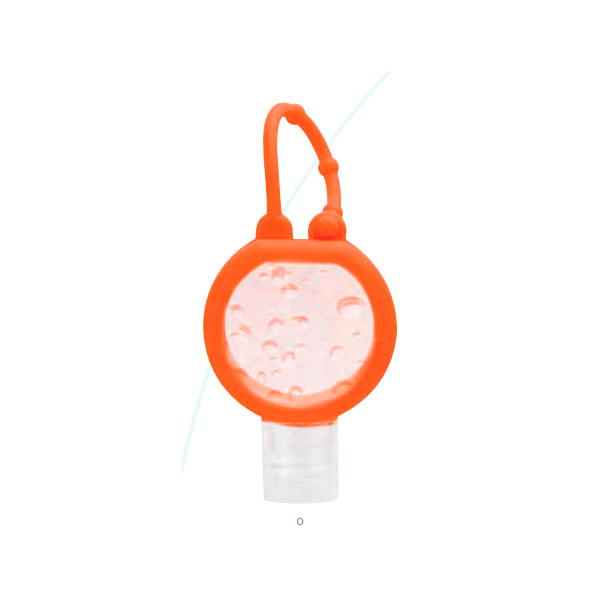 Gel sanitizante portátil y recargable. Incluye sujetador de silicón. Alcohol al 55%.